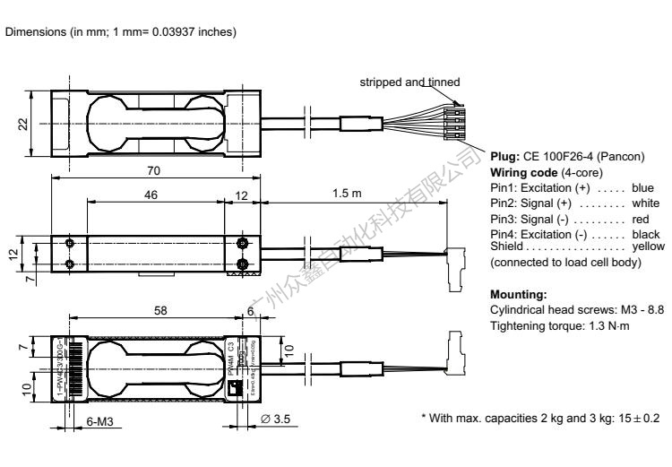 二、PW4MC3/3kg称重传感器相关量程