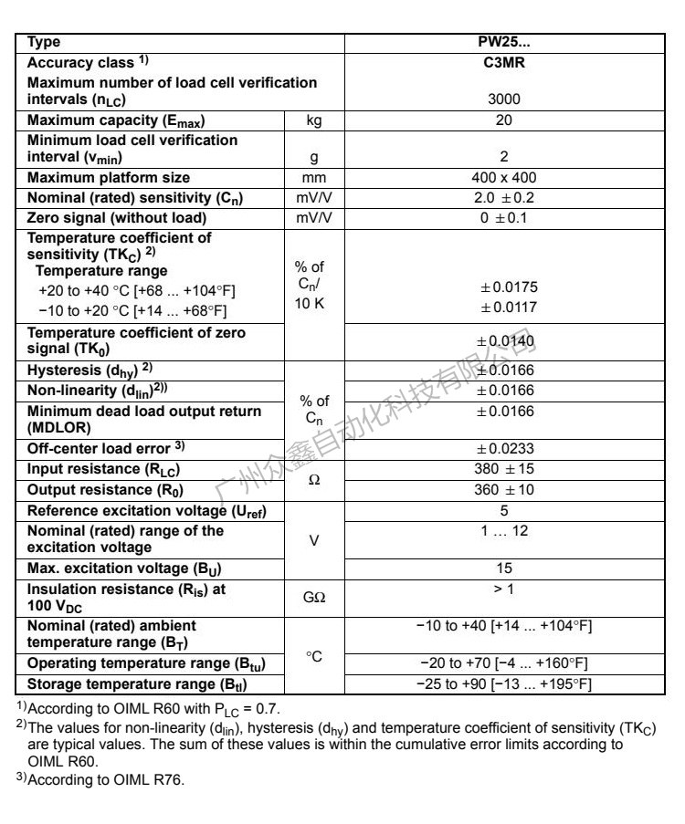 二、PW27C3/20kg称重传感器相关量程