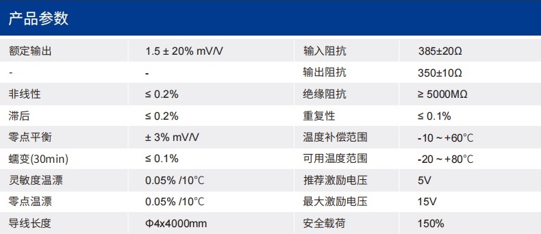 四、CR140力传感器技术参数