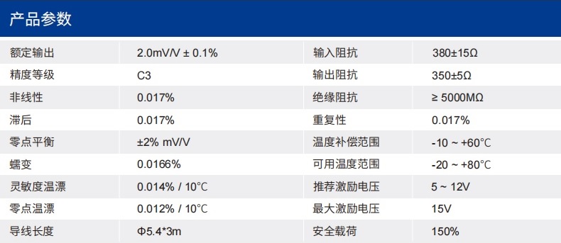 四、SLB2称重传感器技术参数