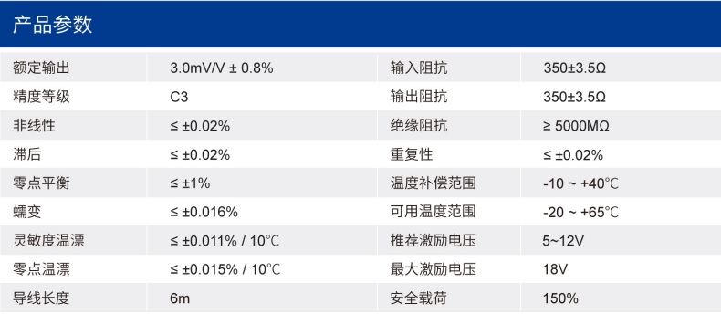 四、SLBD称重传感器技术参数