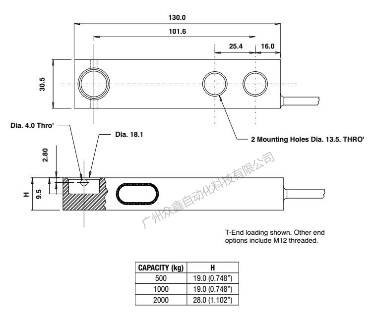 四、美国特迪亚 3520-2000kg称重传感器产品尺寸