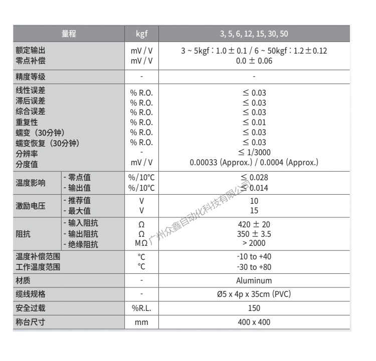 产品量程:3kgf,5kgf,6kgf,12kgf,15kgf,30kgf,50kgf
