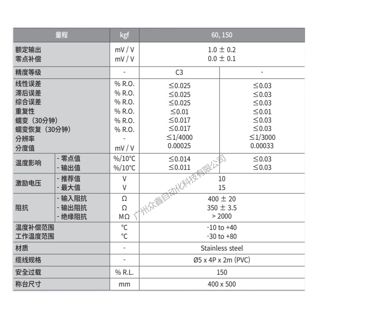 五、韩国凯士CAS品牌 BCLS-150L称重传感器技术参数