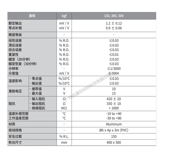五、韩国凯士CAS品牌 BC-500P称重传感器技术参数