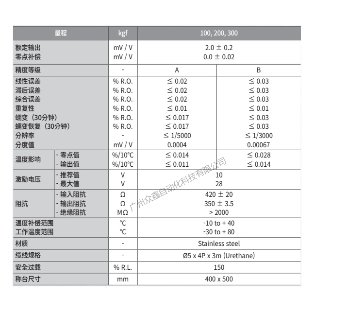五、韩国凯士CAS品牌 BCEP-300L-EXP称重传感器技术参数