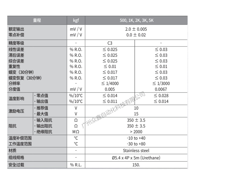 五、韩国凯士CAS品牌 BSS-5T称重传感器技术参数