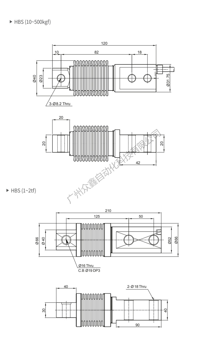 四、韩国凯士CAS品牌 HBS-2T称重传感器产品尺寸