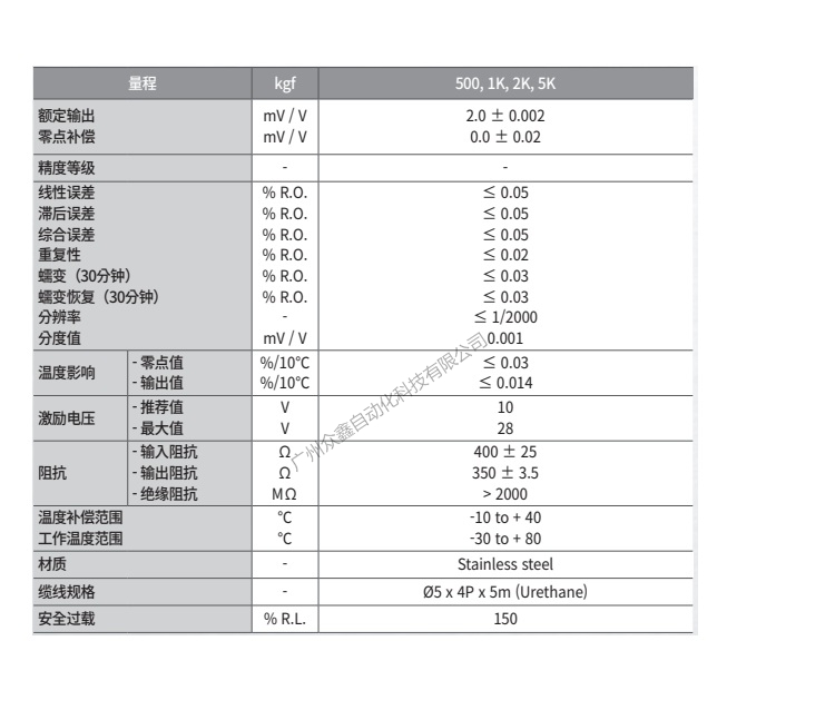 五、韩国凯士CAS品牌 SBS-5T-EXP称重传感器技术参数