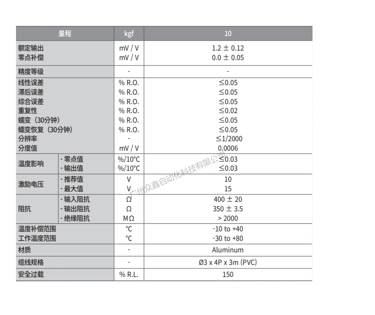 五、韩国凯士CAS品牌 SBAS称重传感器技术参数