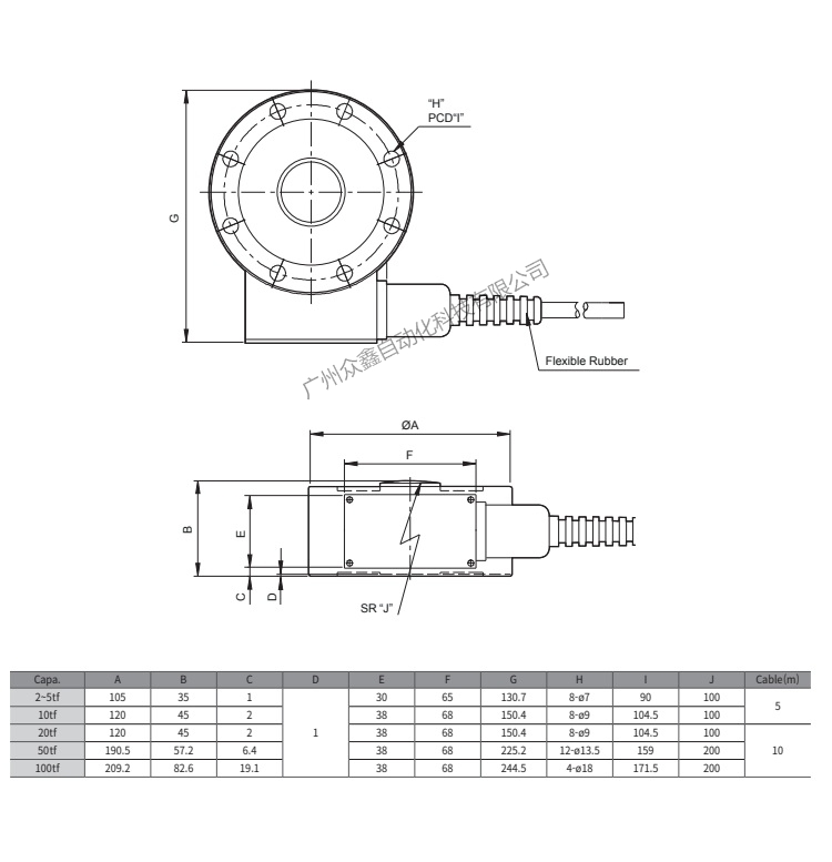 五、韩国凯士CAS品牌 LSC-100T称重传感器技术参数