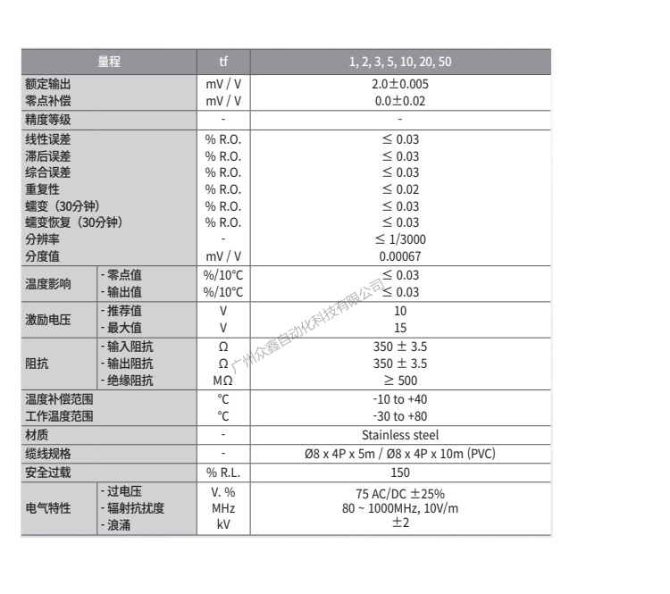 五、韩国凯士CAS品牌 LSS-50T-NR称重传感器技术参数