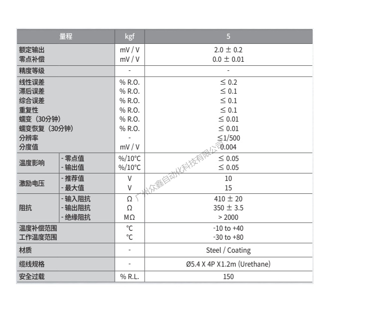 五、韩国凯士CAS品牌 LSOC称重传感器技术参数