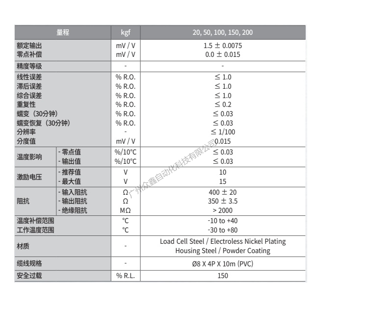 五、韩国凯士CAS品牌 CHE-200A称重传感器技术参数