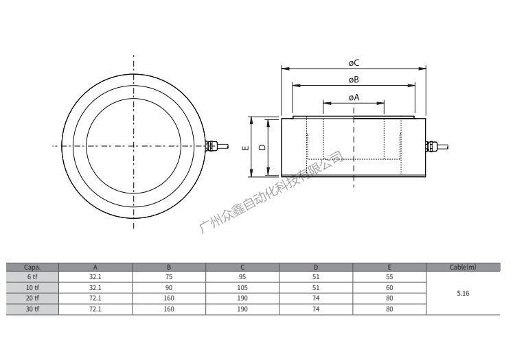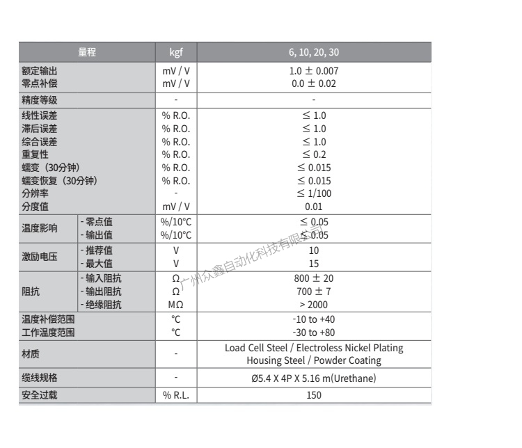 五、韩国凯士CAS品牌 CHE-KM-30T称重传感器技术参数