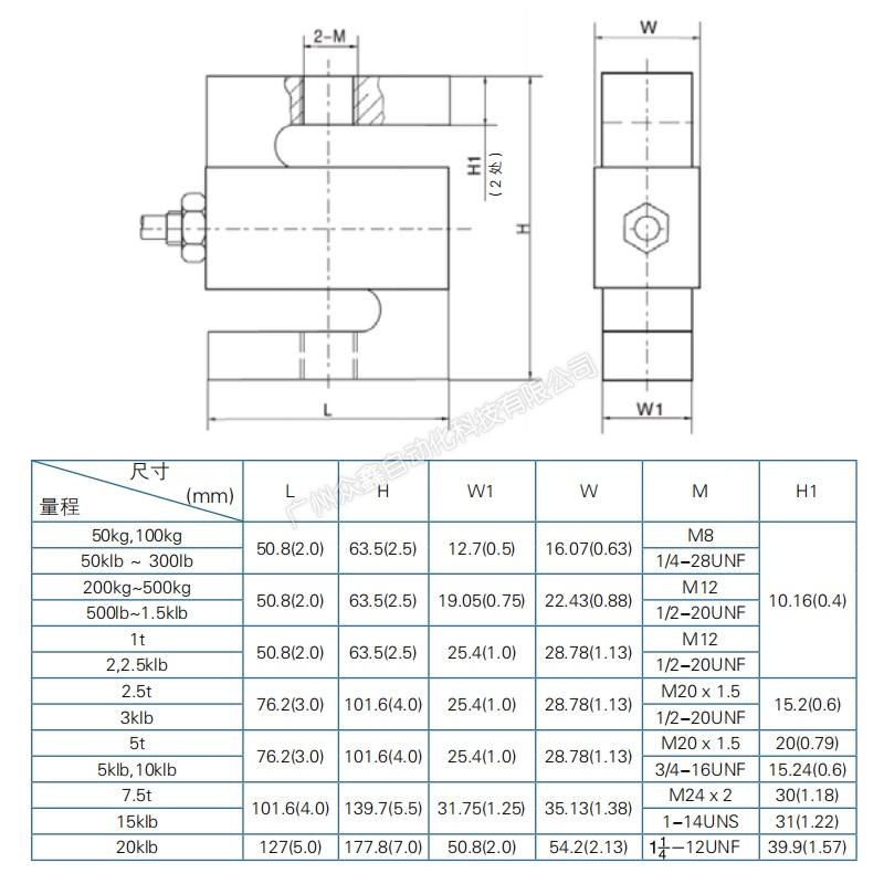 (1)合金钢材质,镀镍,S 型结构,胶封,拉向或压向承载;
