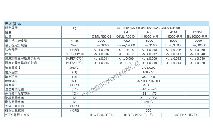 五、ZEMIC品牌 BM11称重传感器技术参数