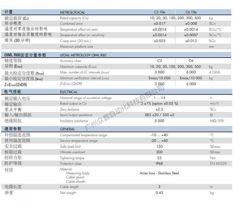 五、法国世感Scaime品牌 F60X称重传感器技术参数