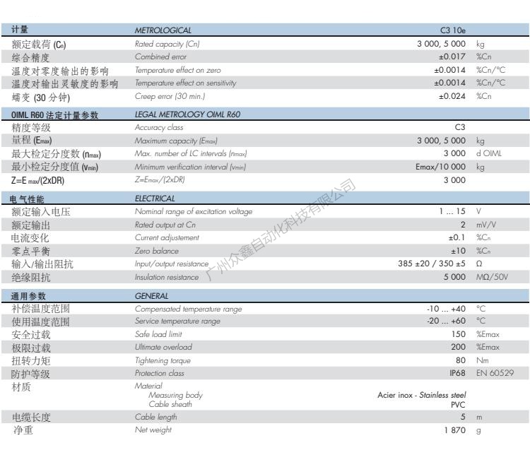 五、法国世感Scaime品牌 SK30X称重传感器技术参数