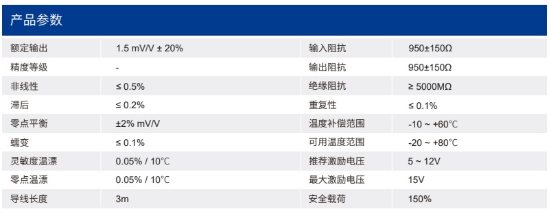 产品量程:50N,100N,200N,500N,1kN,2kN,5kN,10kN,20kN