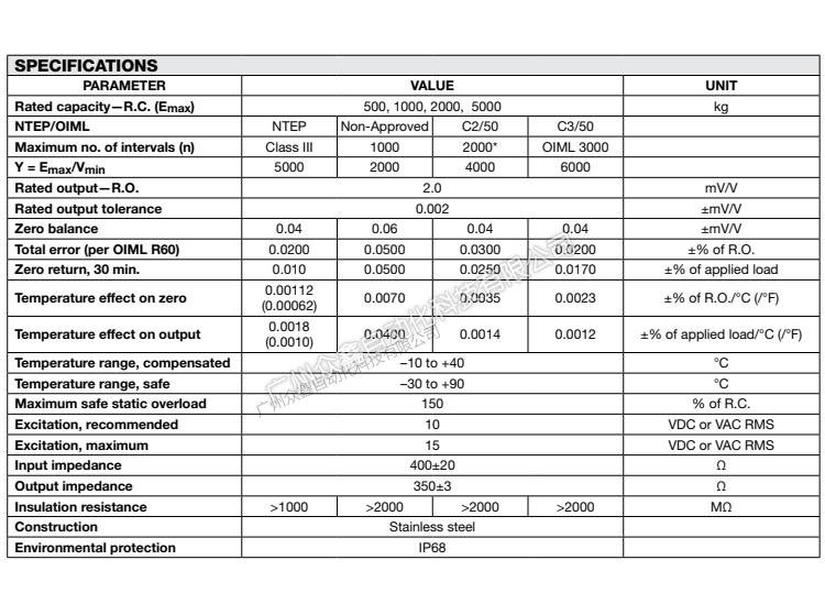 五、美国特迪亚 620称重传感器产品技术参数