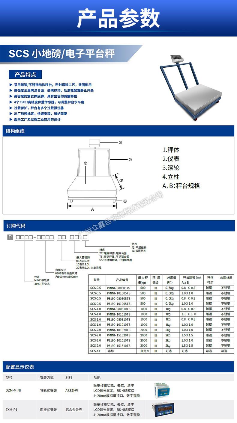 SCS地磅为美国中克塞尔ZXSCELL品牌的一款定制产品,此款定制型号为SCS-1.0,采用美国中克塞尔的SLBC型号称重传感器,地磅的最大称量值为1000kg,秤体材质为碳钢,台面材质为不锈钢,秤体规格为1.0×1.0米,精度等级为C3,分度值达到1kg。