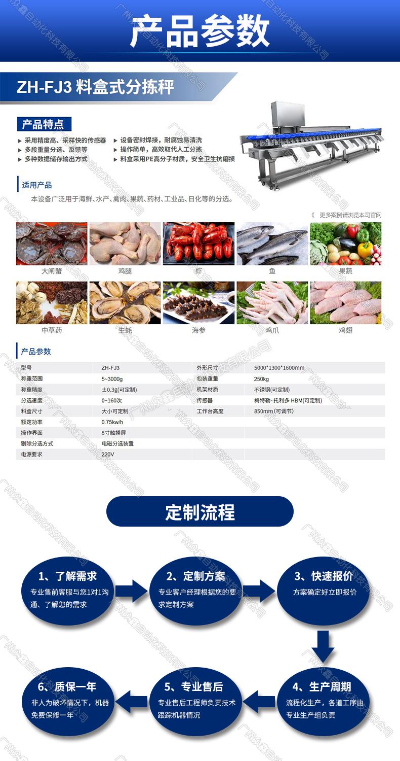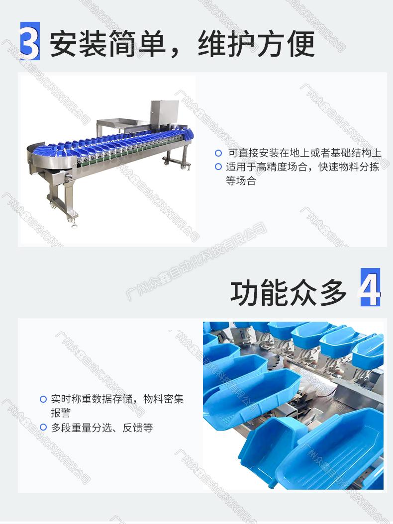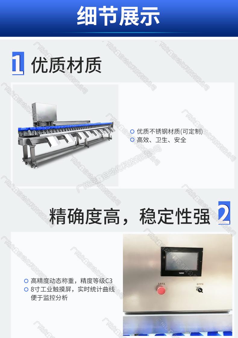 7、本设备广泛用于海鲜、水产、禽肉、果蔬、药材、工业品、日化等行业的分选