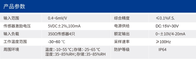 (3)可将电阻应变式称重测力传感器的MV信号放大成标准电流、电压信号输出4~20mA、0~5V等