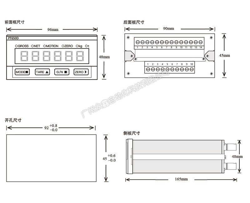 三、PT650D称重显示器产品尺寸
