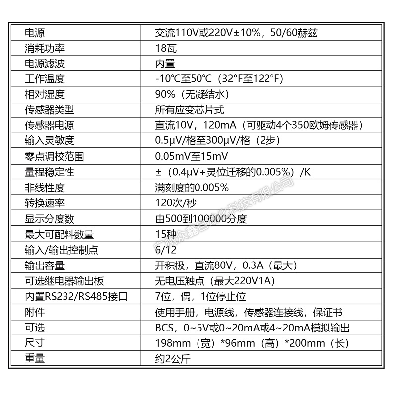二、CB900K皮带秤称重控制器产品参数