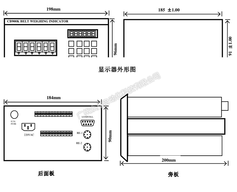 三、CB900K皮带秤称重控制器产品尺寸