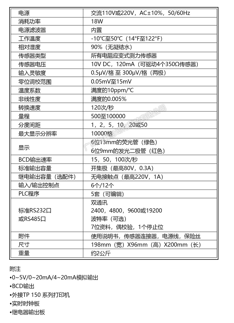 三、CB900P电子称重仪表产品参数