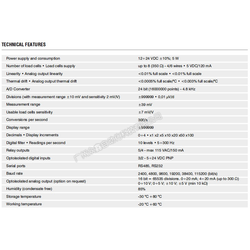 (4)1 个称重传感器专用输入端。