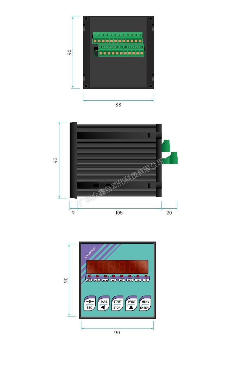 (2)尺寸: 96x96x130 毫米(钻孔模板:92x92 毫米)。