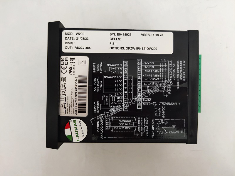 (1)RS485/RS232 串行端口,用于通过 ModBus RTU、ASCII Laumas 或连续单向传输协议进行通信。