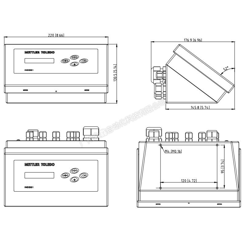 (2)防尘式IND331称重终端具有防护等级为IP66的全不锈钢外壳,适用于各种恶劣的工业环境。可放置于桌面或安装于墙面上使用。与面板式IND331一样,具备OLED显示屏、操作界面以及丰富的接口。