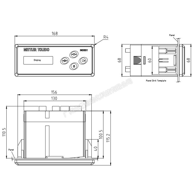 (1)面板式IND331由仪表模块与带有OLED显示屏和操作按键的前面板组成。仪表模块与前面板可连体安装,也可分体安装,从而实现远程显示。