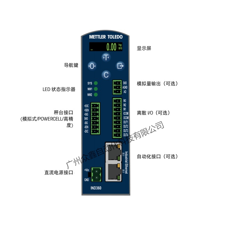 产品介绍:IND360可为您的控制系统提供精确的测量和状态信息,从而让您轻松有效地管理称重应用,提高您的设备效率并节约时间和成本。
