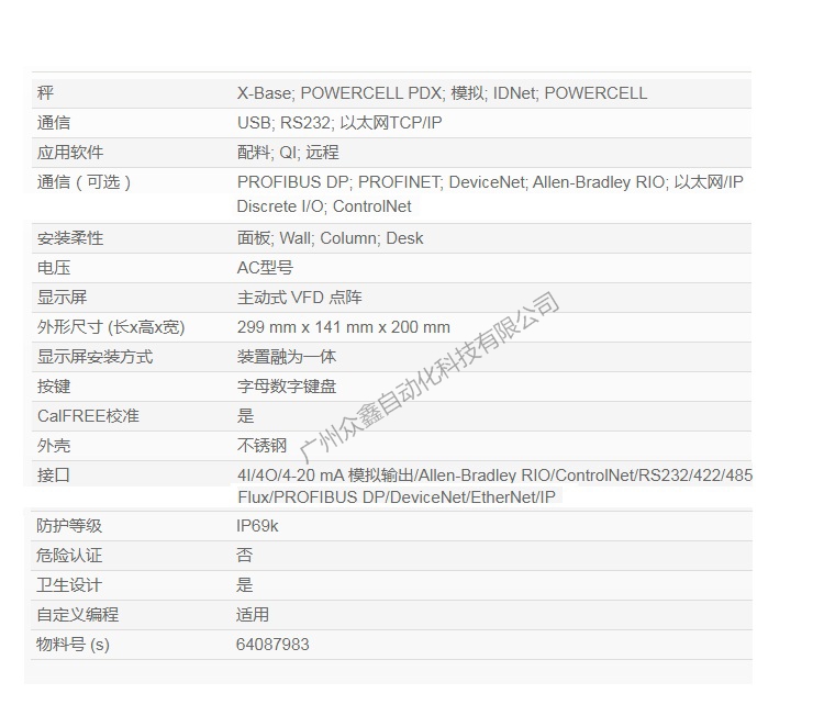 四、梅特勒托利多 XK3140-6000 IND780称重仪表技术参数