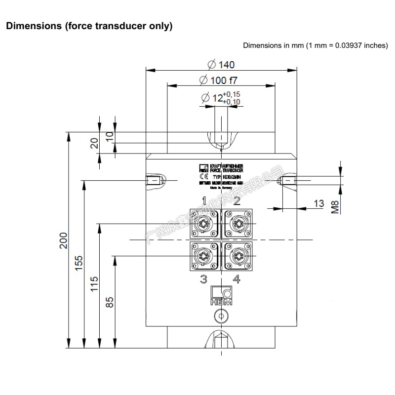 (4)对于中心负载应用,传感器可使用高达3 MN(负载应用单位可用)