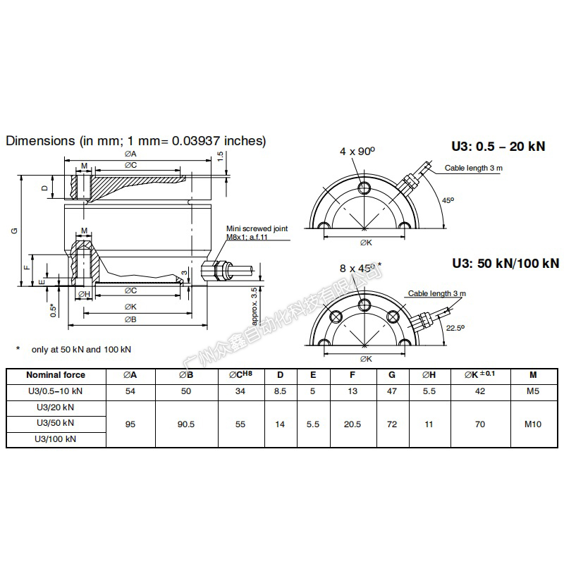 U3/100kN传感器,德国HBM U3/100kN 力传感器