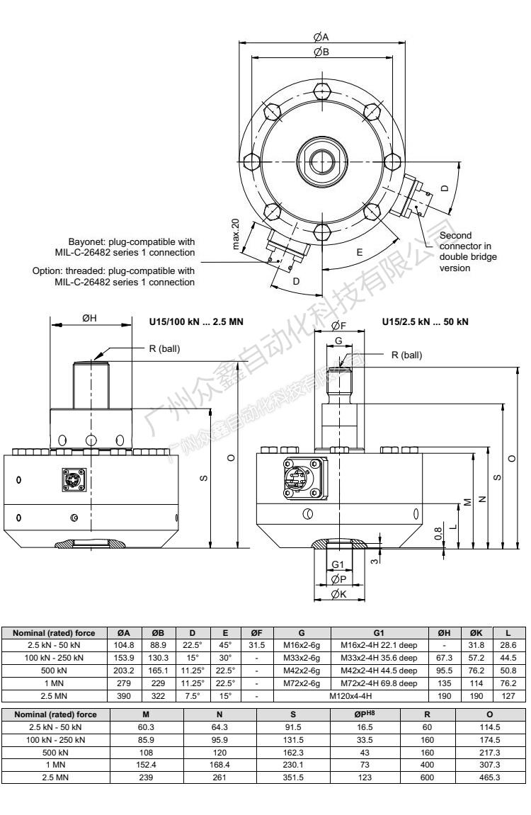 五、U15/25KN力传感器技术参数
