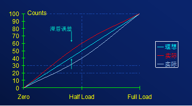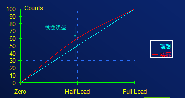 线性: 表示系统的实际输出和理论直线的一致程度。如图所示,当产生线性误差时,系统在空载和满载时的输出是正确的,但这两点 之间的输入-输出点和理想状态不一致。线性误差就是理论直线和实际输出曲线之间的最大差值。