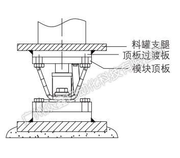 称重模块主要由顶板、底板、过渡板、称重传感器和连接件组成,不同型号的称重模块连接件有所不同,常见的连接件有支撑螺栓、支脚、水平拉杆、材质主要为碳钢、合金钢或不锈钢,根据使用环境的恶劣程度来选择合适的材质。安装方式以料罐为例,将整个称重模块的顶板和底板与过渡板连接后,再将过渡板与料罐支腿和基础预埋板焊接。