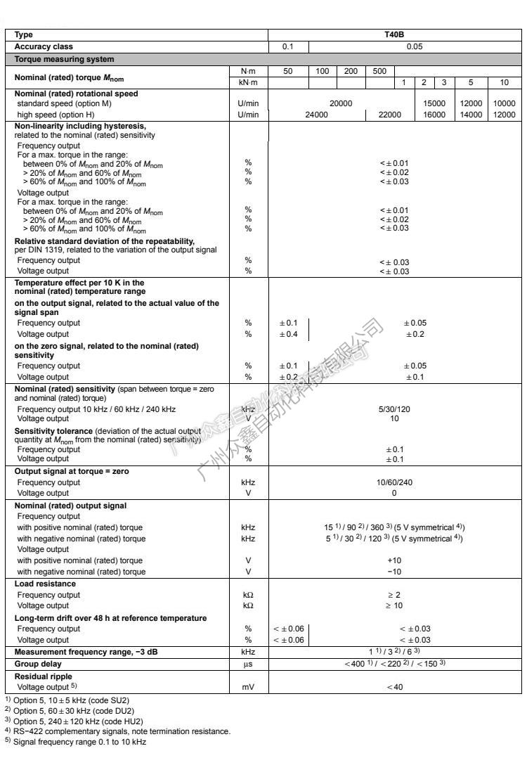 四、德国HBM品牌 T40B扭矩传感器产品技术参数