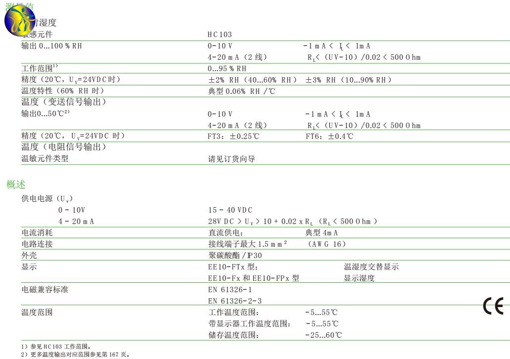 奥地利E+E EE10系列温湿度传感器技术参数