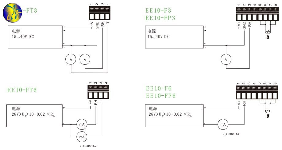 奥地利E+E EE10系列温湿度传感器电路连接图